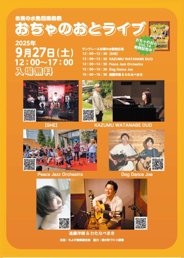 9月27日(土) 12 : 00 ~ 16 : 30 サンクレ-ルお茶の水駅前広場にて、「おちゃのおとライブ」を